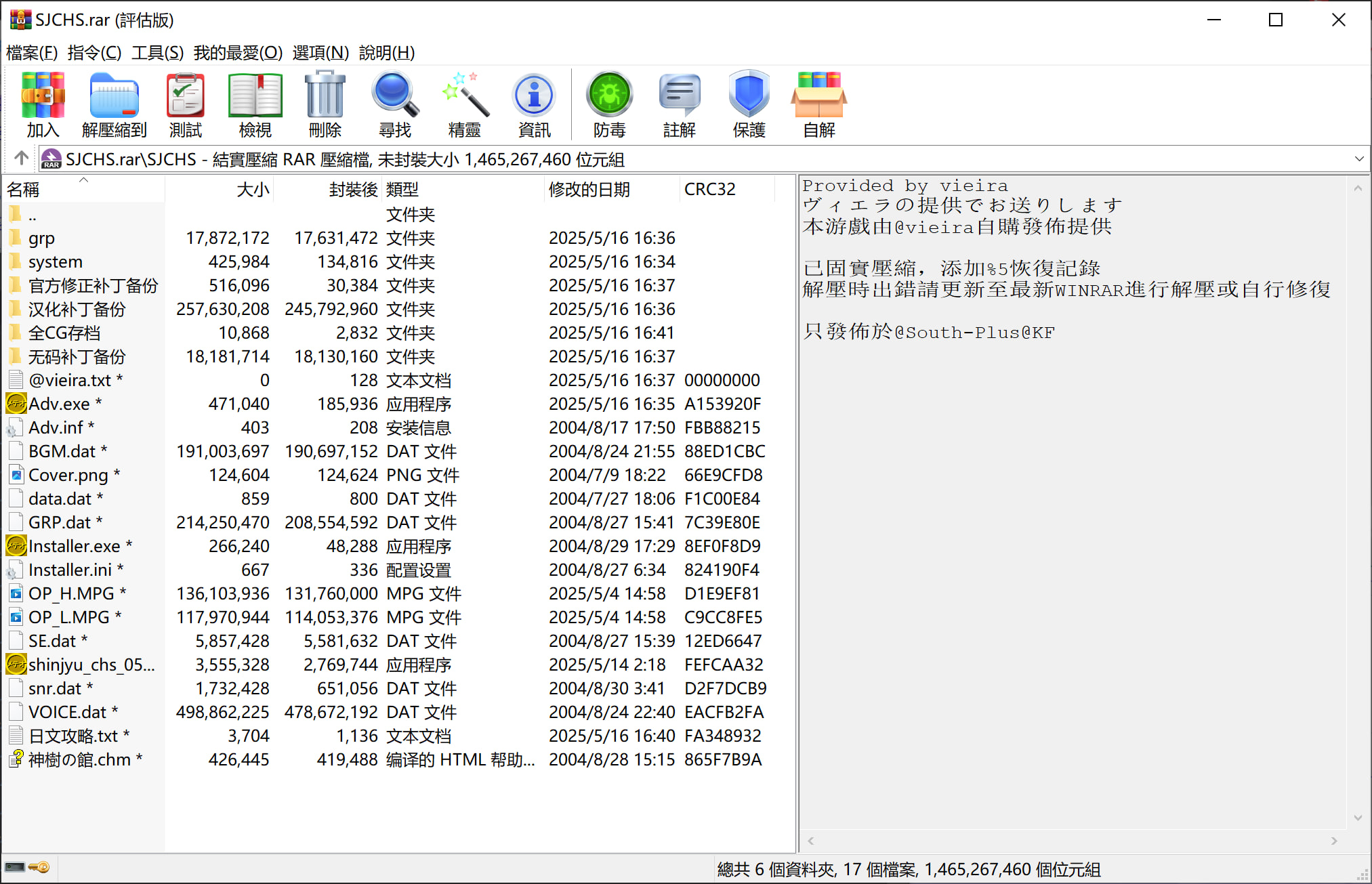 解压时出错请更新至最新WINRAR进行解压或自行修复