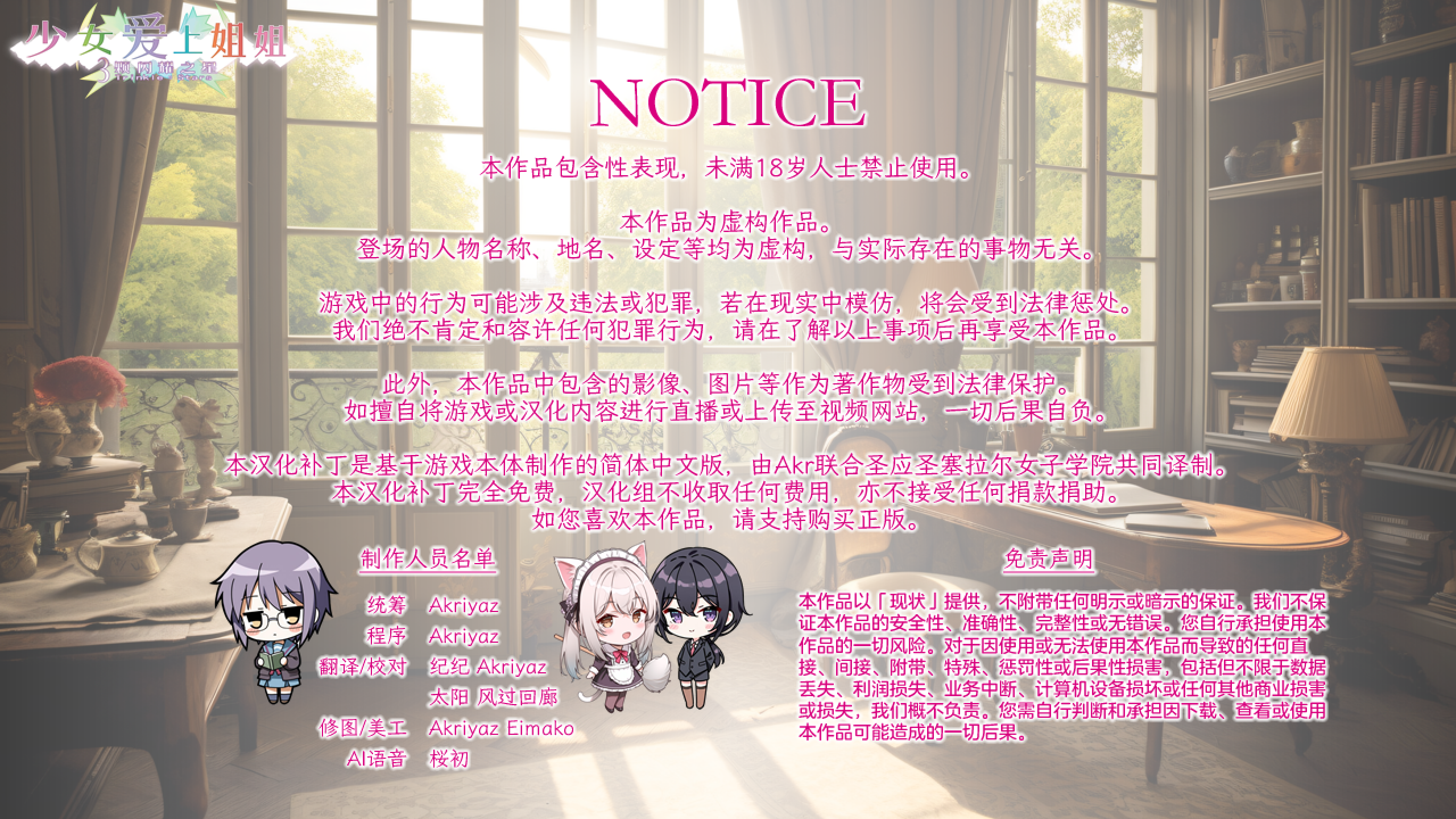 游戏已打【Akr×圣应圣塞拉尔女子学院联合汉化】2025.7.13发布的《処女はお姉さまに恋してる 3つのきら星》正式版全线汉化补丁V1.7.0 + 官方修正补丁V1.1